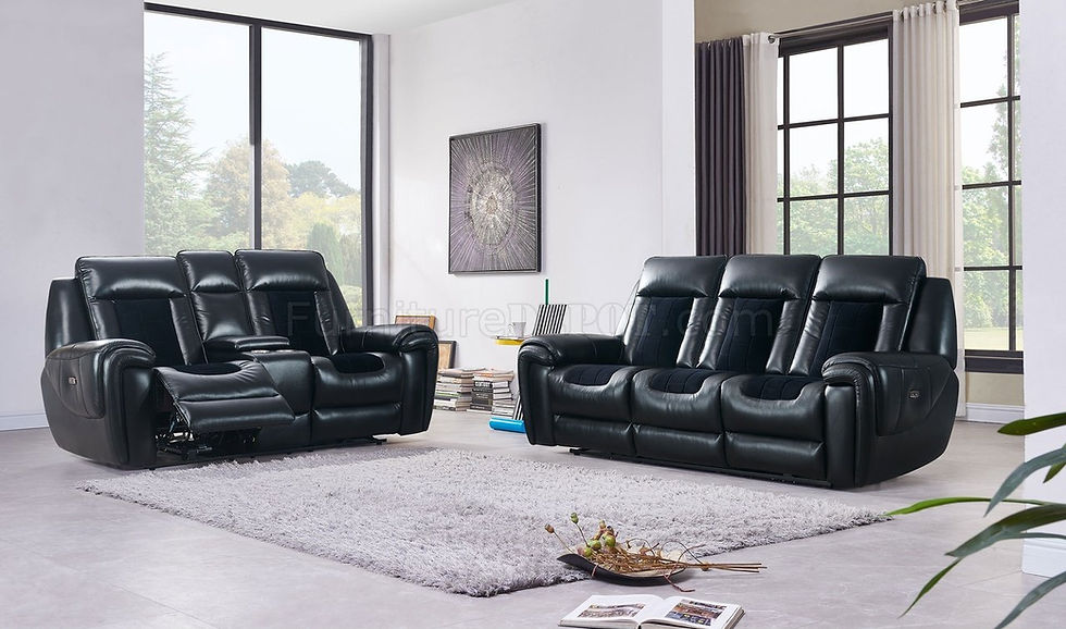 Blanche Power Reclining Sofa & Loveseat Set in Black Velvet with LED - Glo